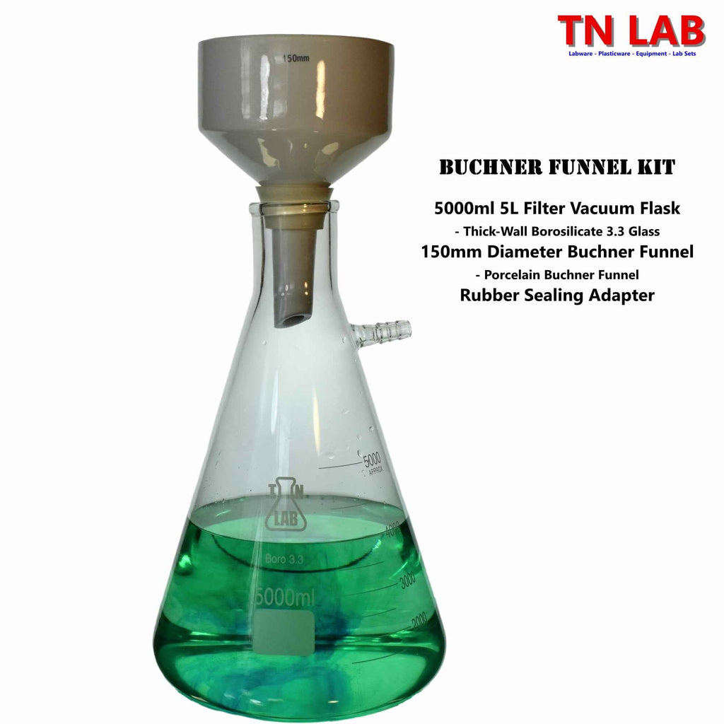 The TN LAB Supply 150mm Buchner Funnel Vacuum Filter Kit consists of a set of two matched products, ensuring perfect fit and function, will work together perfectly.