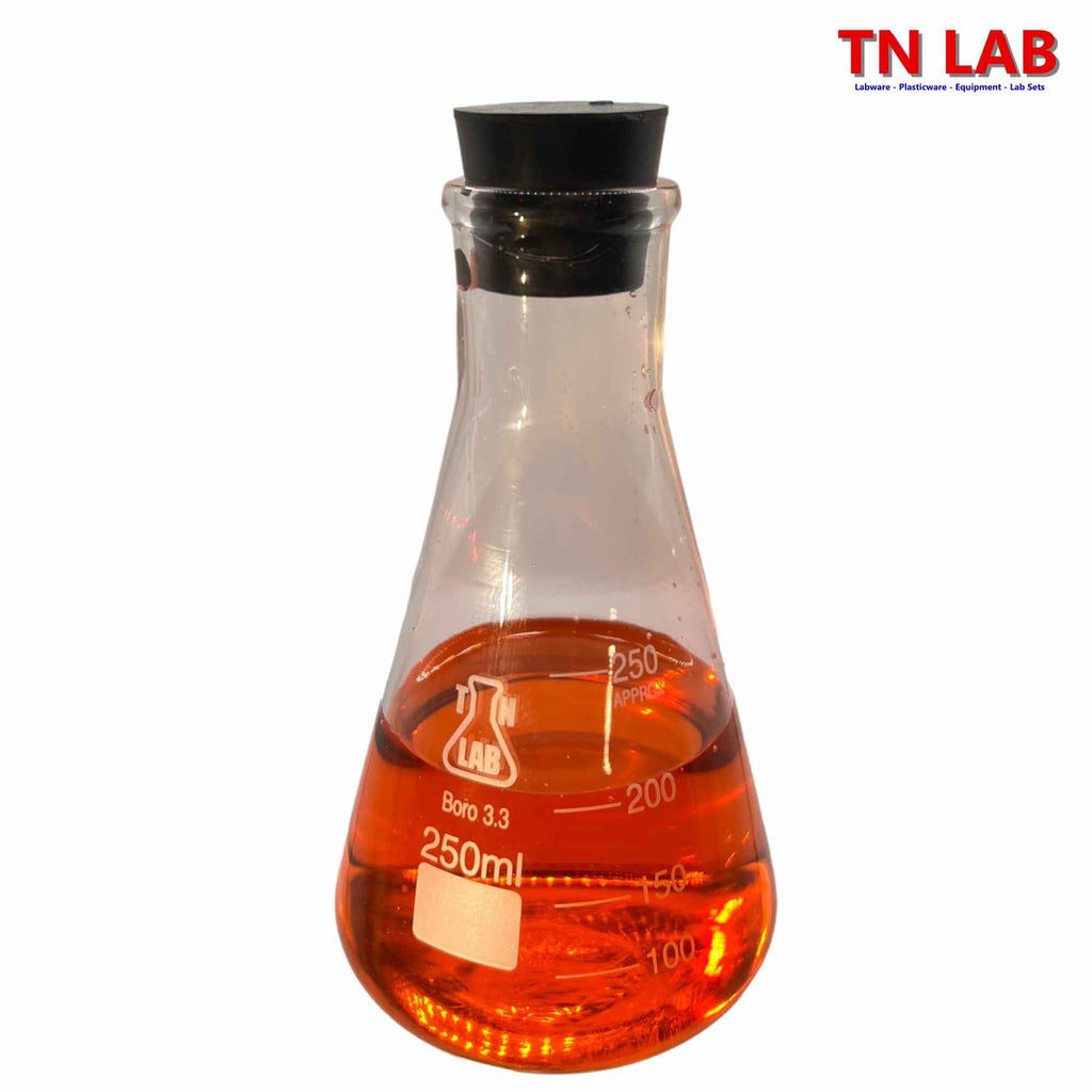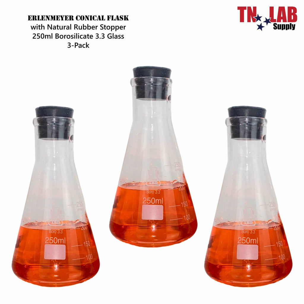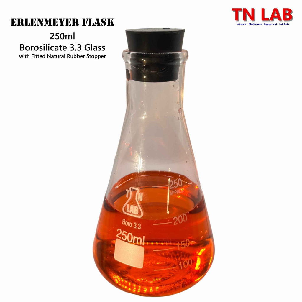 TN Lab Heavy Wall Borosilicate Glass 250ml Erlenmeyer Conical Flask with Rubber Stopper