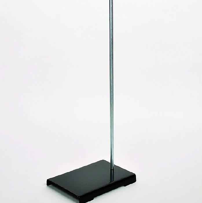 - Stainless steel rod screws into the base; clamps and rings can be attached to the rod