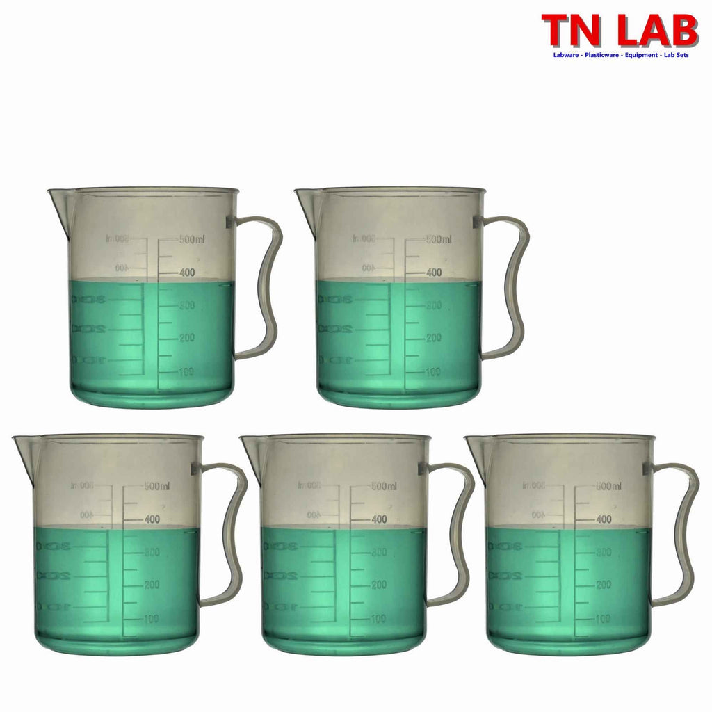 TN LAB POLYPROPYLENE PLASTIC GRADUATED LARGE PITCHER BEAKER CUP 500ML WITH STRONG HANDLE